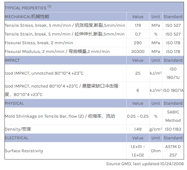 应用范围: 产品描述 LNP STATKON OE008A物性表 LNP STAT-KON OE008A是一种支化聚苯硫醚产品,含有的填充物为40%碳纤维增强材料,可以通过注射成型进行加工。 特性包括: 传导性 支化聚合物结构