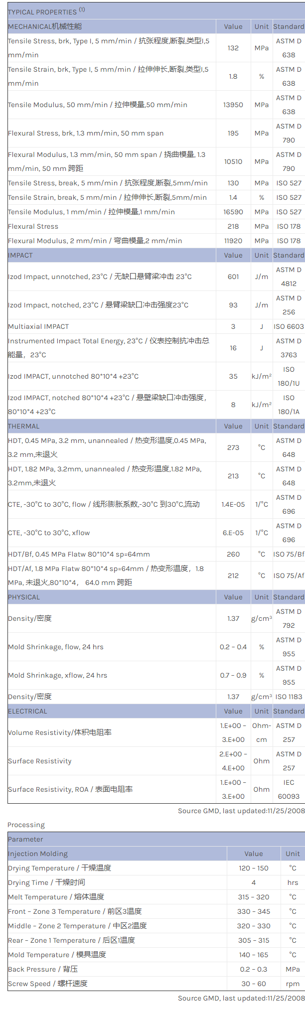 应用范围: 产品描述 LNP STATKON OEL13I物性表 LNP STAT-KON OEL13I是一种线性聚苯硫醚产品,含有的填充物为15%碳纤维增强材料,可以通过注射成型进行加工。 特性包括: 传导性 耐冲击 耐磨 润滑 线性聚合物结构