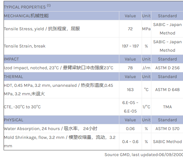 应用范围:产品描述NORYL PPO ERN7231物性表