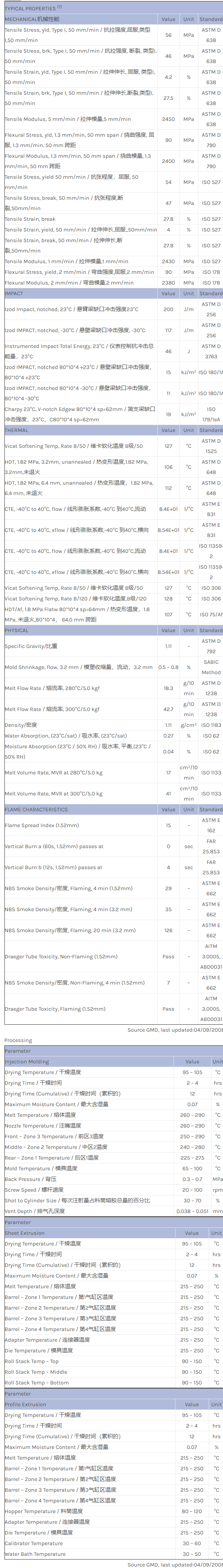 应用范围:产品描述NORYL PPO NH4030B物性表NORYL NH4030B resin是一种聚苯醚+PS(PPE+PS)产品,可以通过片材挤出成型、型材挤出成型或注射成型进行加工。特性包括:Flame Retardant无卤素