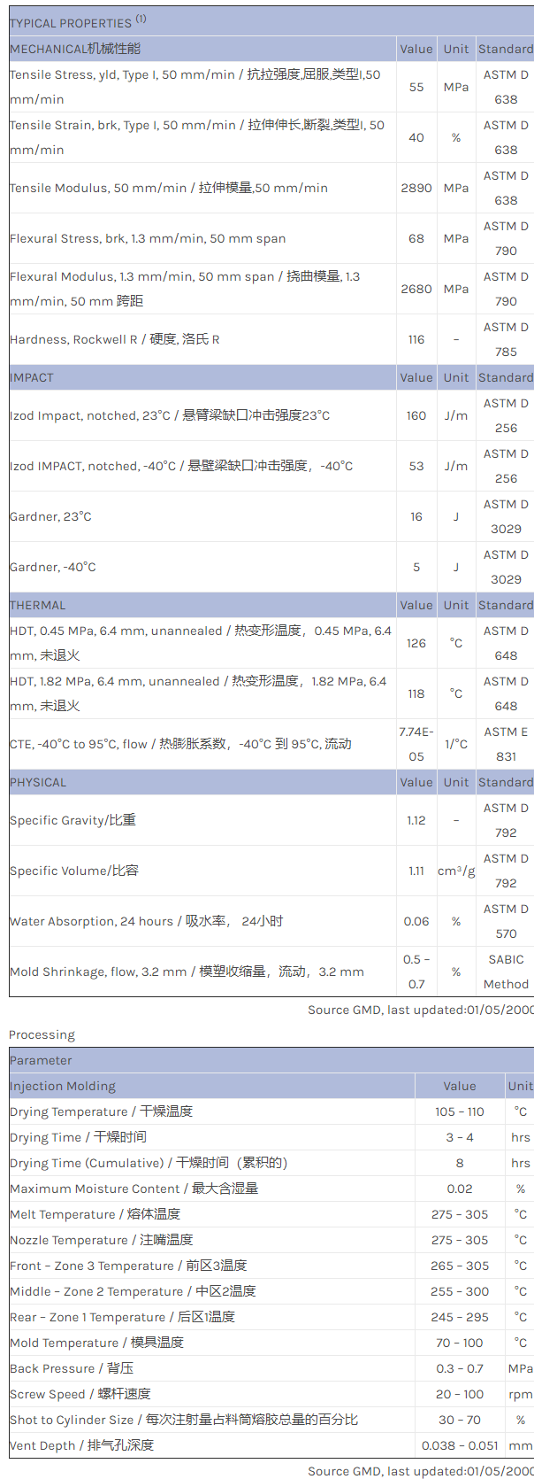 应用范围:产品描述NORYL PPO PX1269物性表汽车用。改良的耐天候能力。