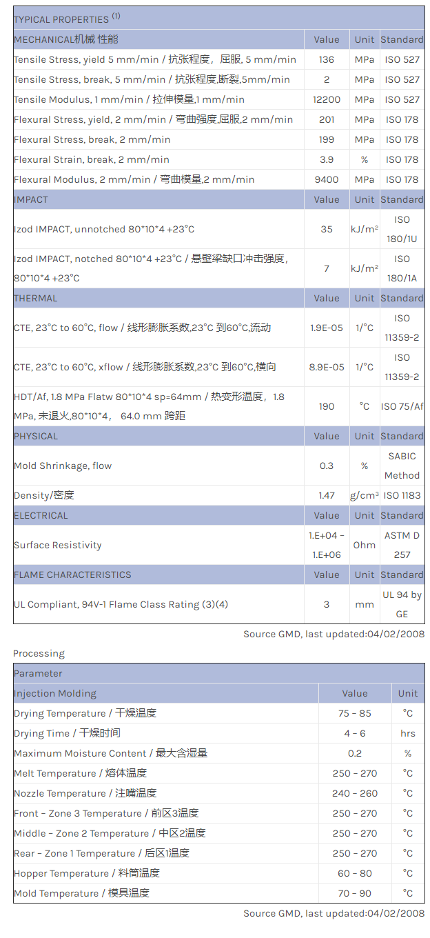 应用范围: 产品描述 LNP STATKON PX98038物性表 LNP* STATKON* PX98038 is a compound based on PA6 resin containing Carbon Fiber, Glass Fiber, Flame Retardant. Added features include : Flame Retardant, Electrically Con