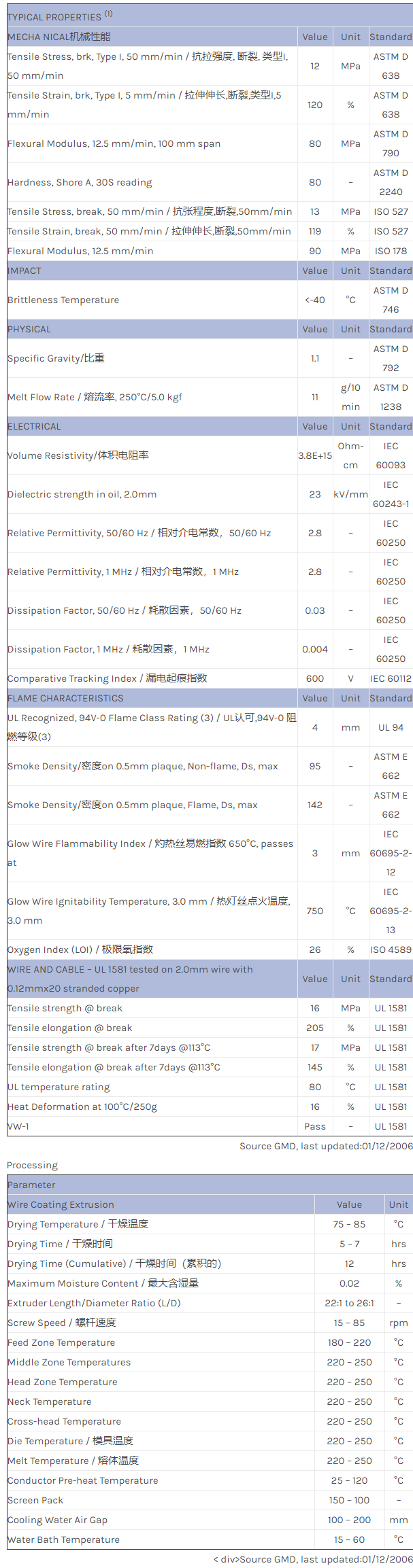 应用范围:产品描述NORYL PPO WCD801A物性表柔软,非卤化阻燃PPE-TPE挤出级,低比重,硬度80,导线绝缘材料和外壳应用.相关色号:WCD801A-BK2C007、WCD801A-BK1066、WCD801A-GY5B378、WCD801A-BL5E154、WCD801A-GY8E381、WCD801A-111、WCD801A-BK1066
