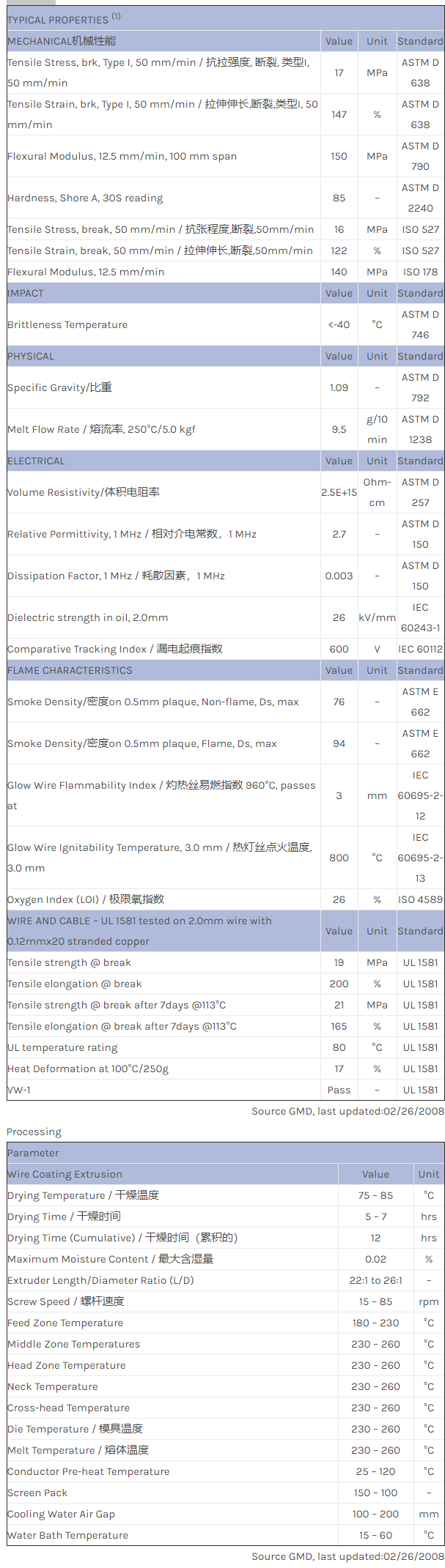 NORYL WCD851 resin是一种聚苯醚+TPE(PPE+TPE)材料,加工方式为:挤压层涂法。