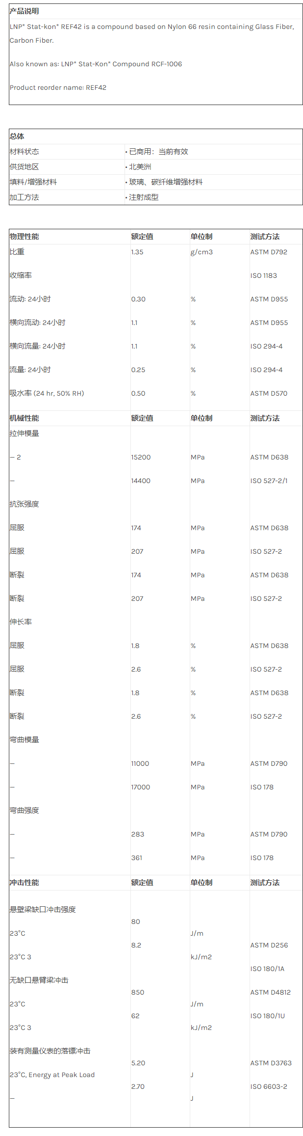 应用范围:产品描述LNP Statkon REF42物性表