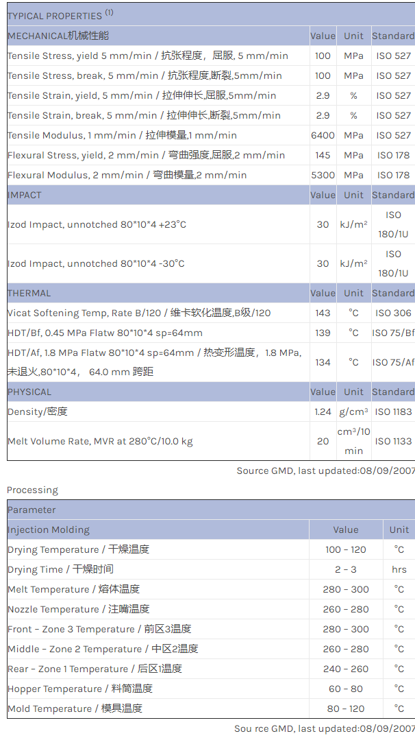 应用范围:产品描述NORYL PPO EXNL0284物性表Noryl* EXNL0284 resin is a high flow blend of polyphenylene ether (PPE) and polystyrene (PS) resin that contains 20 % glass reinforcement. The resin is suitable for injection