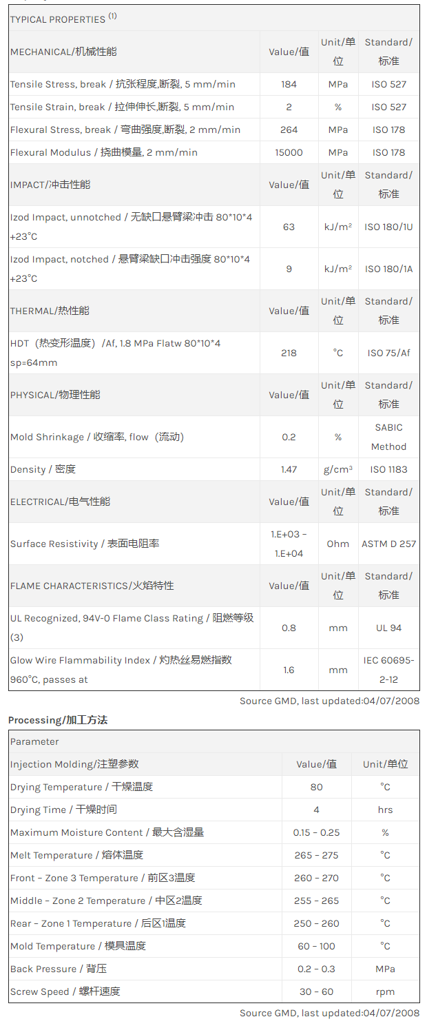 应用范围: 产品描述 LNP Statkon RX04031物性表 “LNP STAT-KON RX04031是一种聚酰胺66(尼龙66)材料,含有的填充物为玻璃、碳纤维增强材料,加工方式为:注射成型。 LNP STAT-KON RX04031的主要特性有: 阻燃/额定火焰 通过ROHS认证” LNP* STARFLAM* RX04031 is a compound based on PA66