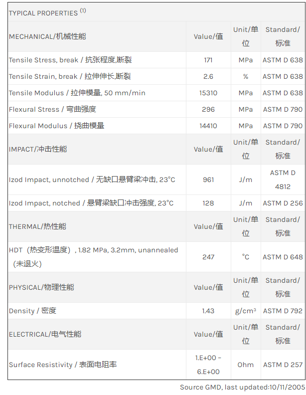 应用范围: 产品描述 LNP Statkon RX05489物性表 “LNP STAT-KON RX05489是一种聚酰胺66(尼龙66)材料,含有的填充物为碳纤维增强材料。 LNP STAT-KON RX05489的主要特性有: 传导性 润滑” LNP* STAT-KON* RX05489 is a compound based on Nylon 66 resin containing PT