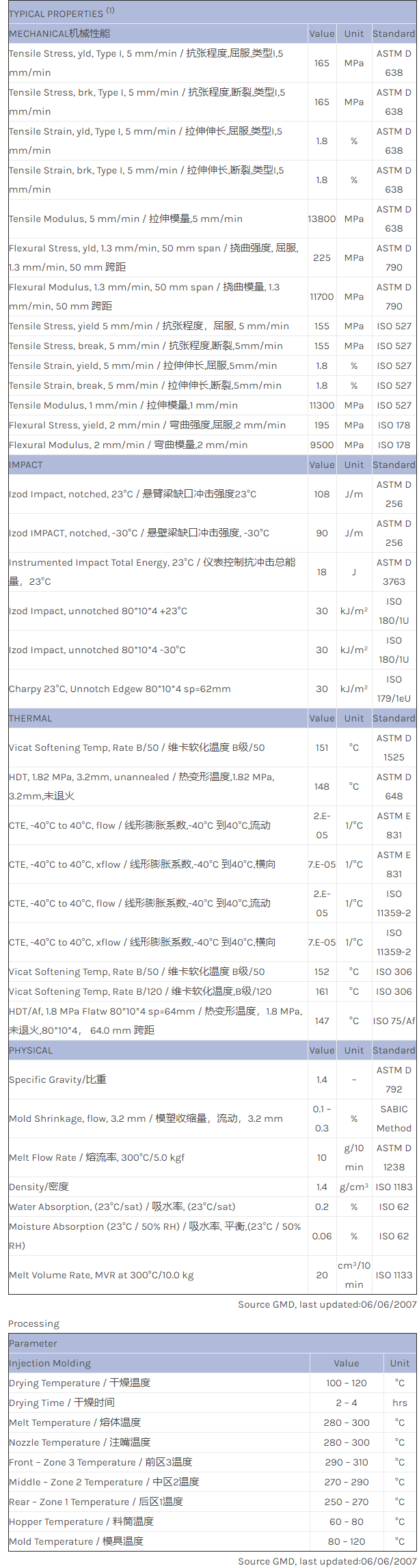 NORYL GFN1740V resin是一种聚苯醚+PS(PPE+PS)产品,含有的填充物为40%玻璃纤维增强材料,可以通过注射成型进行加工。 N