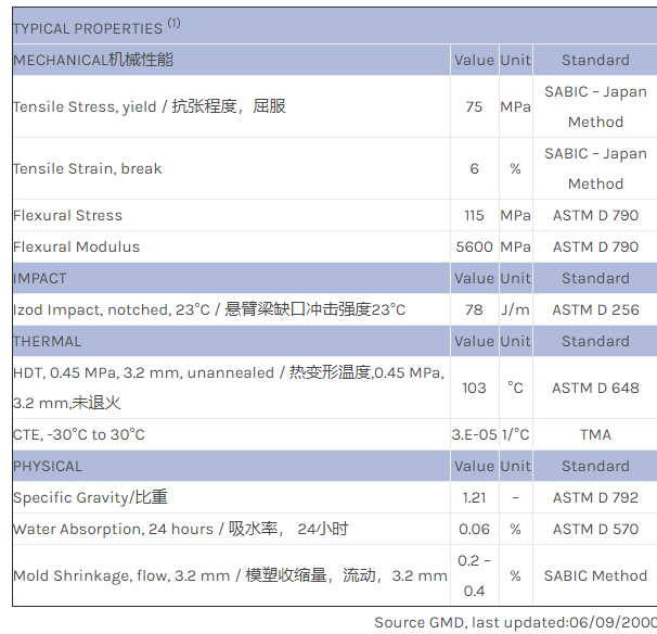 应用范围:产品描述NORYL PPO HFG201物性表