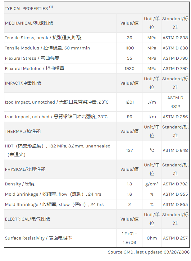 应用范围: 产品描述 LNP Statkon WS002I物性表 “LNP STAT-KON WS002I是一种聚丁烯对苯二甲酸酯(PBT)材料,含有的填充物为不锈钢纤维。 LNP STAT-KON WS002I的主要特性有: 传导性 耐冲击” LNP* Stat-kon* WS002I is a compound based on Polybutylene Terephalate resin