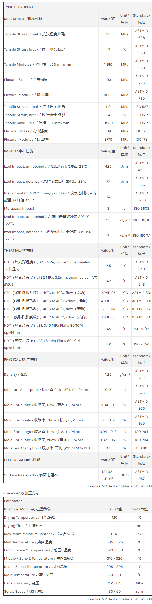 应用范围: 产品描述 LNP Statkon DE003P物性表 “LNP STAT-KON DE003P是一种聚碳酸酯(PC)材料,含有的填充物为碳纤维增强材料,加工方式为:注射成型。 LNP STAT-KON DE003P的主要特性为:传导性。” LNP STAT-KON* DE003P is a compound based on Polycarbonate resin containing