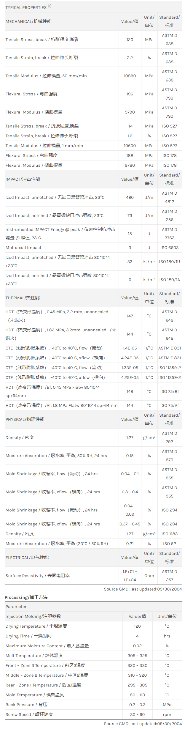 应用范围: 产品描述 LNP Statkon DE004物性表 “LNP STAT-KON DE004是一种聚碳酸酯(PC)材料,含有的填充物为碳纤维增强材料,加工方式为:注射成型。 LNP STAT-KON DE004的主要特性为:传导性。” 相关颜色色号:DE004-BK1A680 LNP STAT-KON* DE004 is a compound based on Polycarbonat