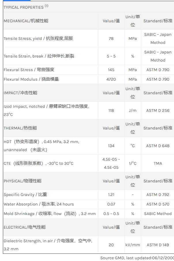NORYL PX4716 resin是一种聚苯醚+PS(PPE+PS)材料,含有的填充物为15%玻璃纤维增强材料。