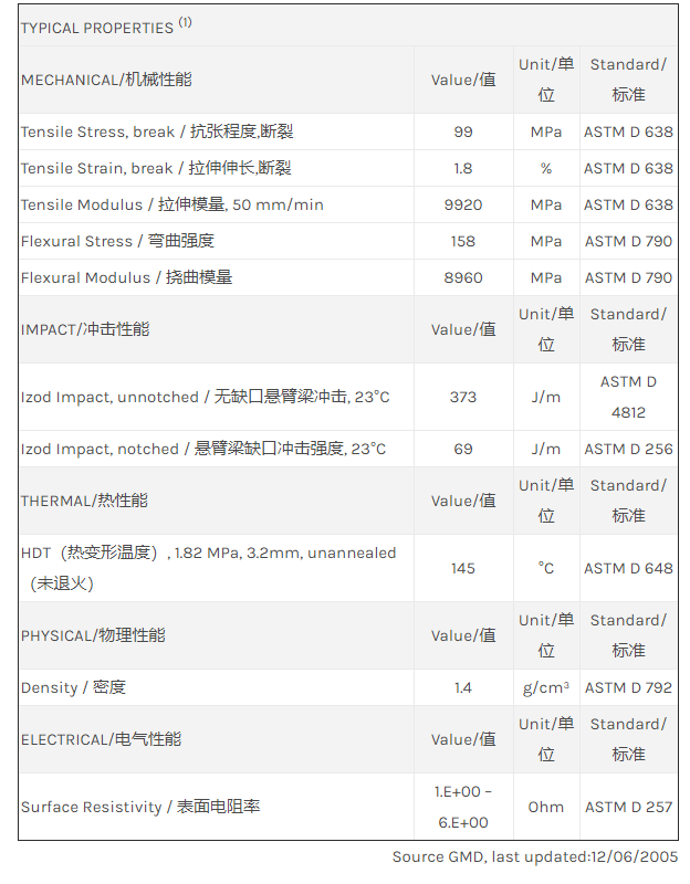 应用范围: 产品描述 LNP Statkon DEL329E物性表 “LNP STAT-KON DEL329E是一种聚碳酸酯(PC)产品,含有的填充物为10%碳纤维增强材料,可以通过注射成型进行加工。 特性包括: Flame Retardant 传导性 加工性能良好 耐磨 润滑” LNP* Stat-kon* DEL329E is a compound based on Polycarb