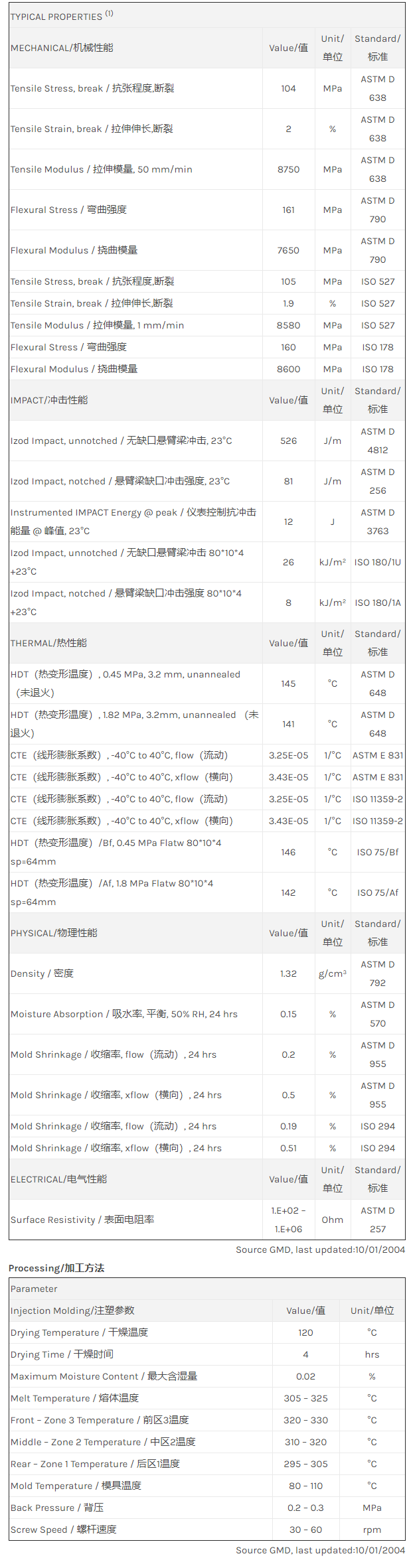 应用范围: 产品描述 LNP Statkon DEP42E物性表 “LNP STAT-KON DEP42E是一种聚碳酸酯(PC)材料,含有的填充物为碳纤维增强材料,加工方式为:注射成型。 LNP STAT-KON DEP42E的主要特性有: 加工性能良好 润滑” LNP STAT-KON* DEP42E is a compound based on Polycarbonate resin co