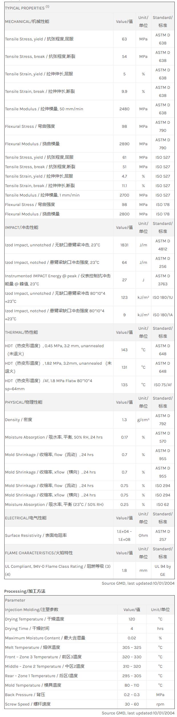 应用范围: 产品描述 LNP Statkon DX96717C物性表 “LNP STAT-KON DX96717C是一种聚碳酸酯(PC)产品,含有的填充物为专有填料,可以通过注射成型进行加工。 特性包括: 阻燃/额定火焰 Flame Retardant 传导性” 相关颜色色号:DX96717C-NC LNP STAT-KON* DX96717C is a compound based on