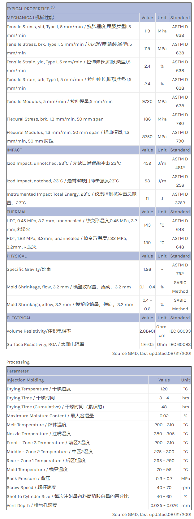 应用范围:产品描述LNP STATKON Lexan_EXCP0106物性表SINGLE LOT DATA. 15% carbon fiber reinforced. Conductive and non-ECO flame retardant. Business and computer equipment. UL V-0 rating pending.