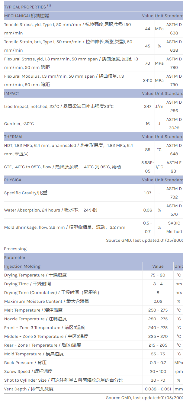 应用范围:产品描述NORYL PPO MX5609物性表PRELIMINARY DATA. Nonbrominated, nonchlorinated FR resin. 180F HDT. Medium heat resistance. Good impact over wide temperature range.