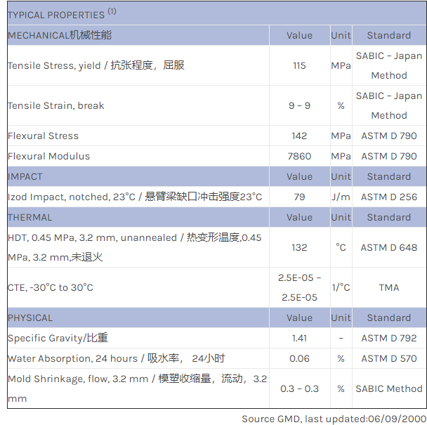 应用范围:产品描述NORYL PPO NFV1030物性表