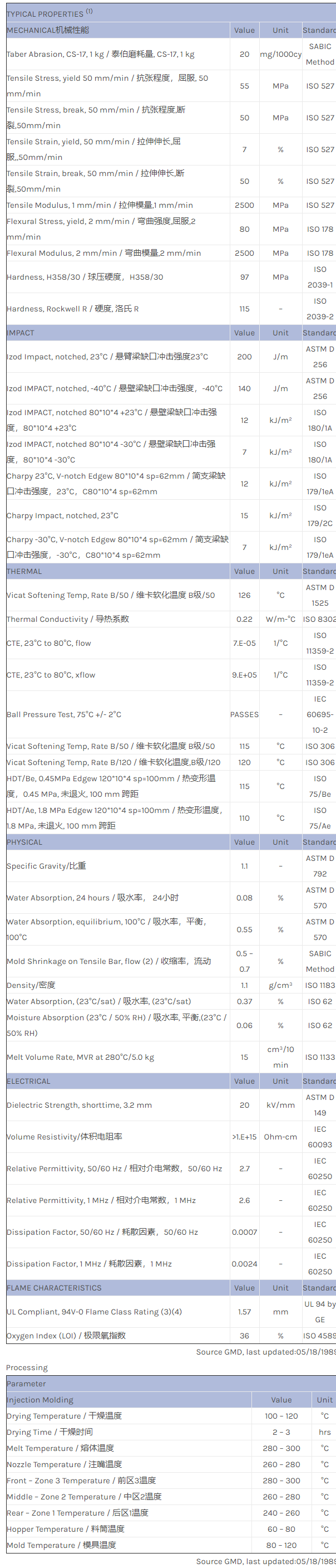 应用范围:产品描述NORYL PPO PX1783物性表NORYL PX1783 has so-called anti-squeak properties eliminating squeaky noises in car interiors. The flame retardancy make the product suitable for ashtray lids.