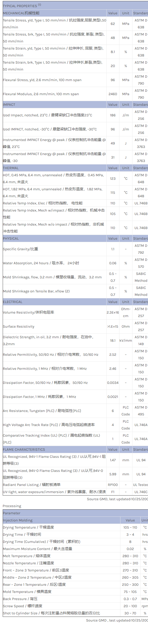 应用范围:产品描述NORYL PPO PX1800X物性表PPO+PS. Improved productivity and reliability. Nonchlorinated, nonbrominated flame retardant. 239F HDT.