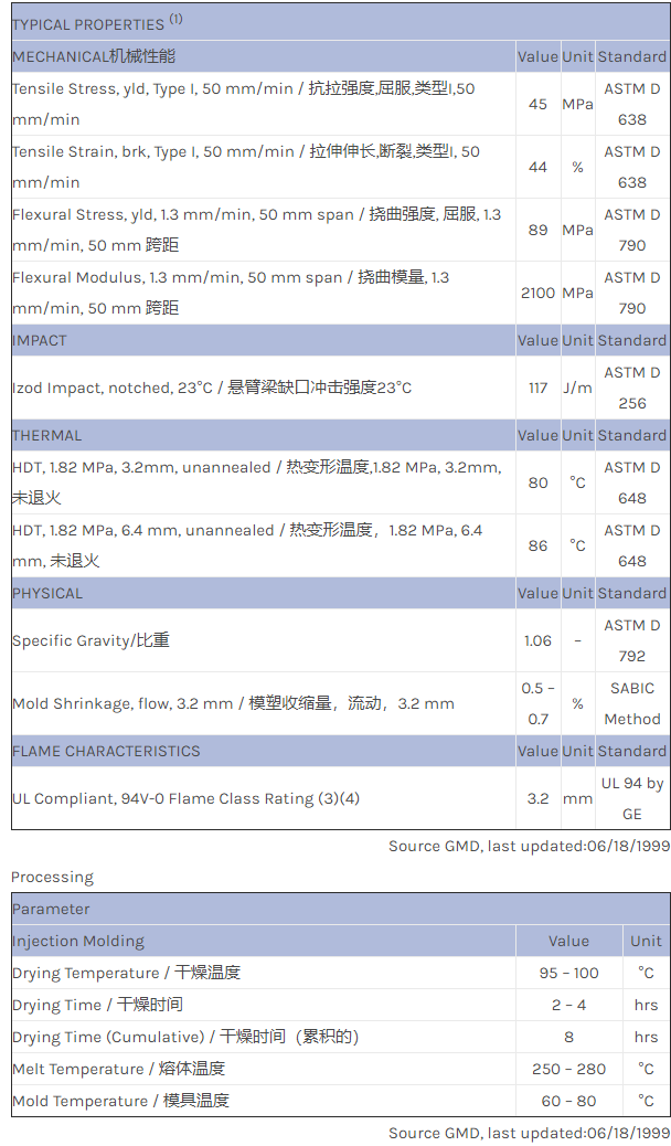 应用范围:产品描述NORYL PPO PX6021物性表Low heat, flame retardant PPO/HIPS alloy.