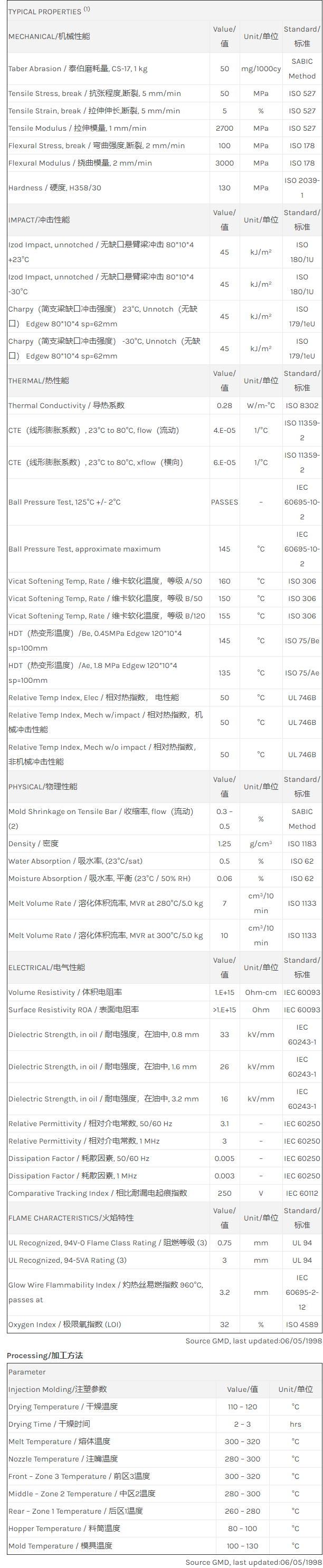 Noryl PPO V01550物性表
