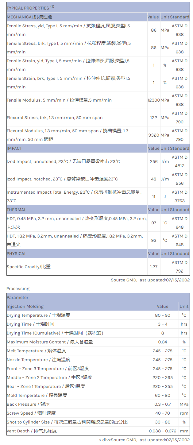 SINGLE LOT DATA, 15% carbon fiber reinforced nonhalogenated FR PC+ABS for applications requiring ESD or moderate EMI-shielding.