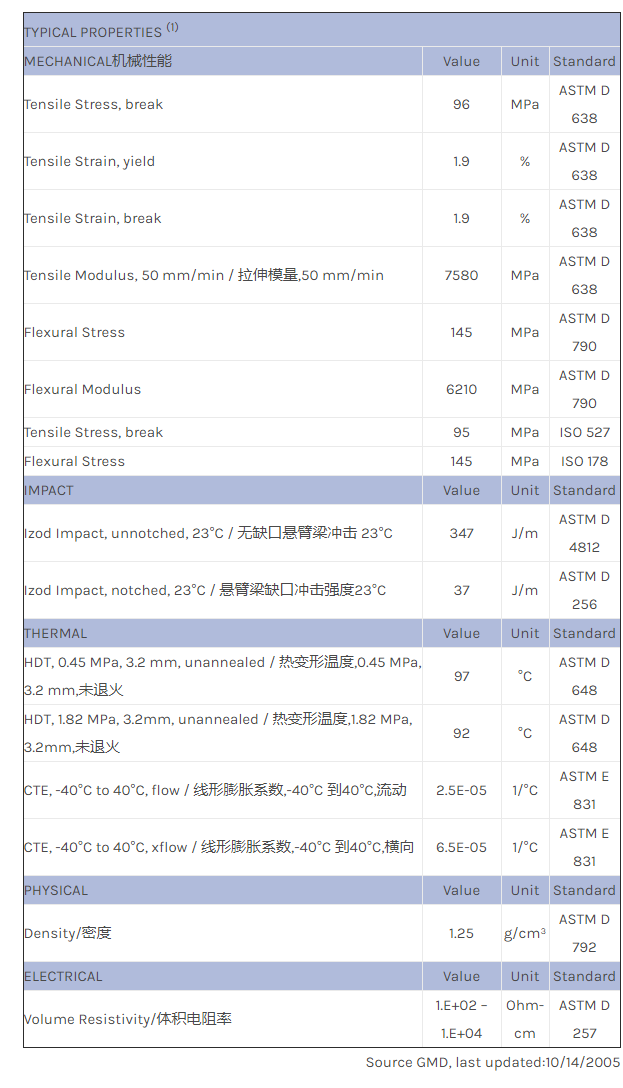 应用范围:产品描述LNP STATKON NX03602物性表LNP STAT-KON* NX03602 is a compound based on PC+ABS Blend resin containing Carbon Fiber, Flame Retardant. Added features of this material include: Electrically Conductive.