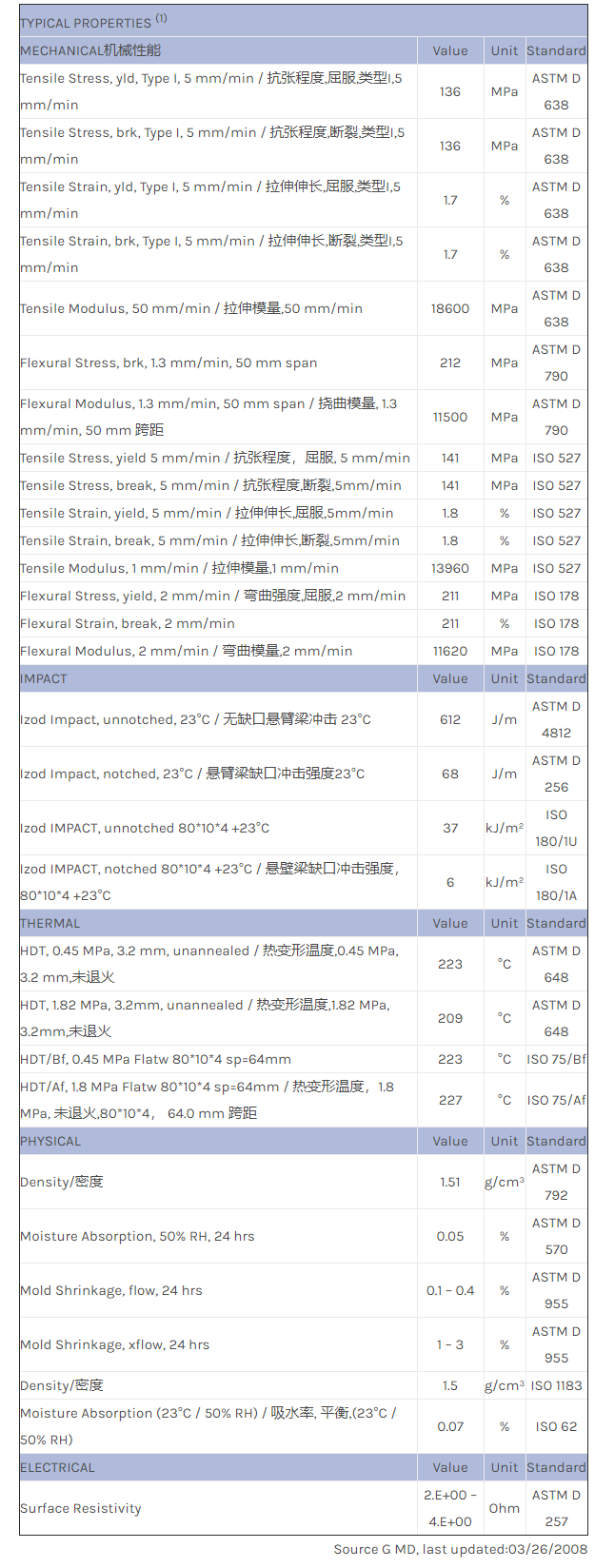 应用范围:产品描述LNP STATKON WEF42物性表LNP Stat-Kon WCF-1006 is a compound based on PET/PBT resin containing carbon and glass fiber reinforcements.