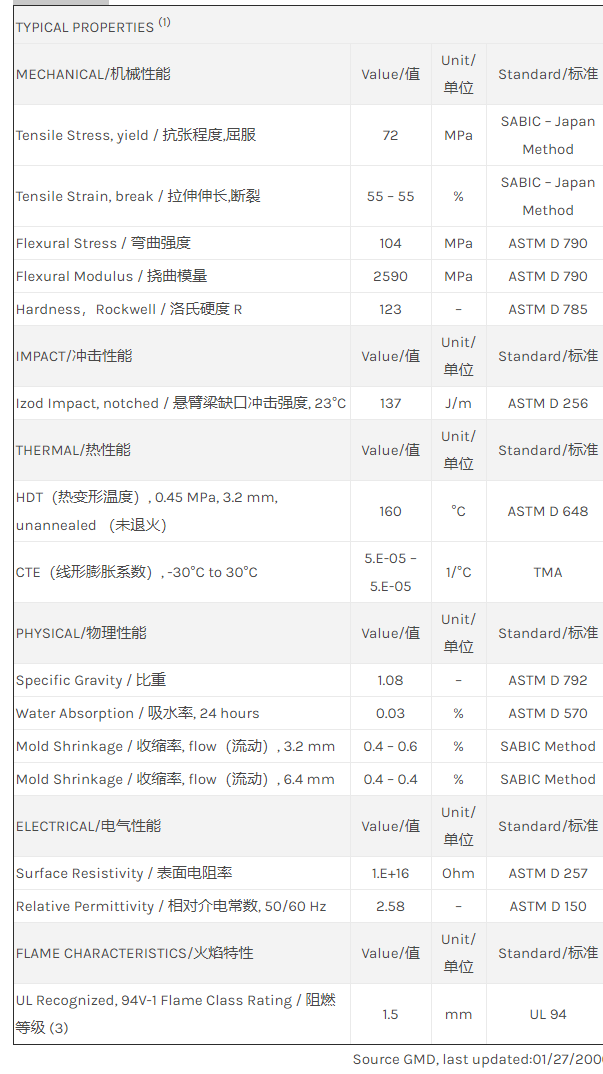 “惠州NORYL PPO534 resin是一种聚苯醚+PS(PPE+PS)材料,该产品在亚太地区有供货。