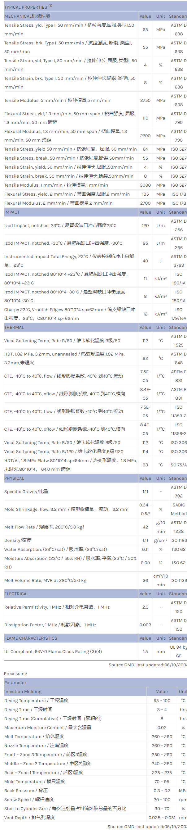 应用范围:产品描述NORYL PPO PX0003物性表PX0003 resin is a modified PPE+PS blend with an excellent balance of non-halogenated flame retardance, hydrolytic stability, impact and heat resistance, good flow, and low Speci
