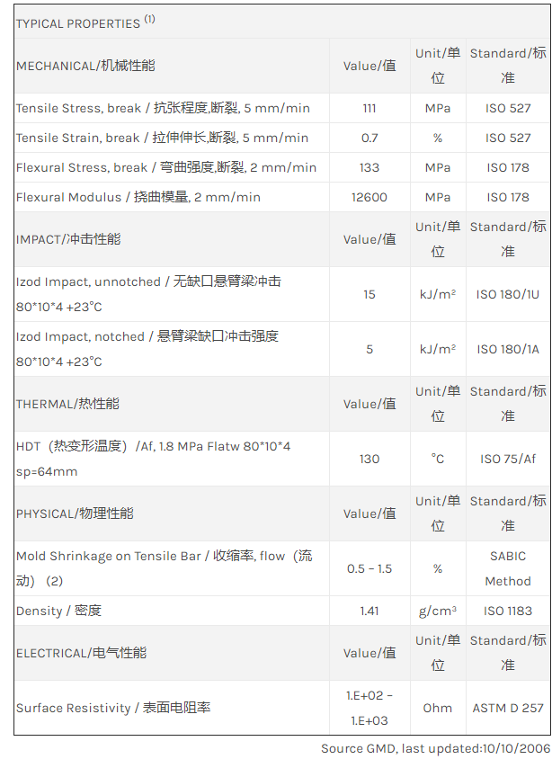 应用范围: 产品描述 LNP Statkon ZX05043物性表 “LNP STAT-KON ZX05043是一种聚苯醚+PS(PPE+PS)材料,含有的填充物为玻璃、碳纤维增强材料。 LNP STAT-KON ZX05043的主要特性有: 通过ROHS认证 润滑” LNP* Stat-kon* ZX05043 is a compound based on PPE+PS Blend resi