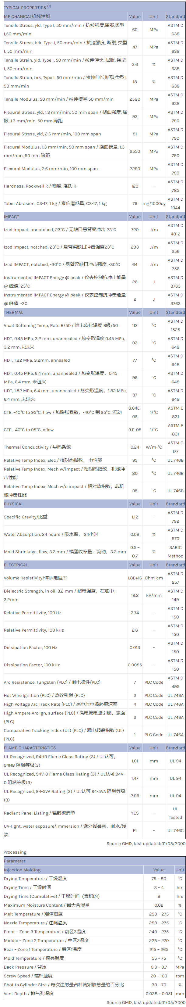 应用范围:产品描述NORYL PPO PX1600X物性表FR Noryl classico grade. Limited use.相关色号:PX1600X-701、PX1600X-WH4018