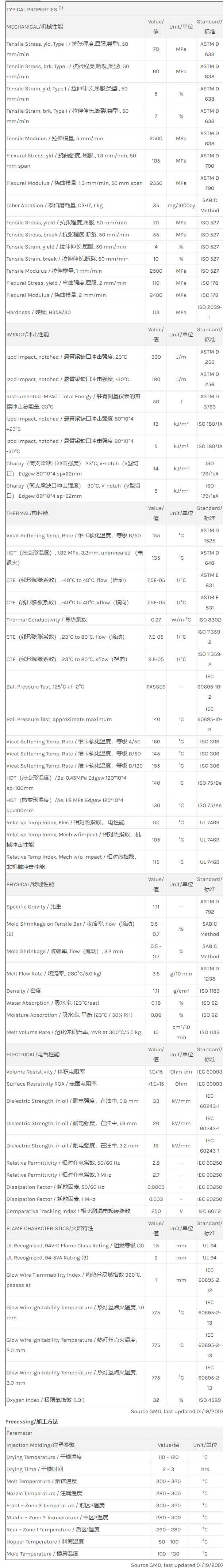 Noryl PPO V0150B物性表