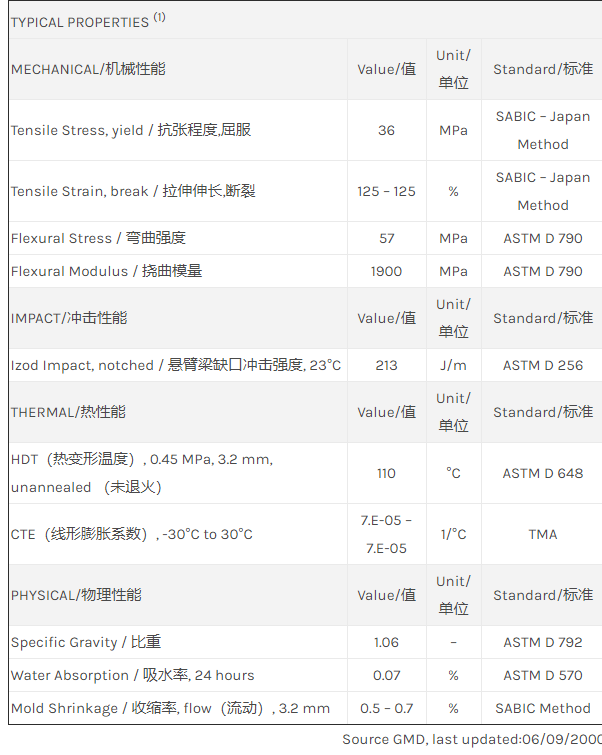 Noryl PPO ECN0240物性表