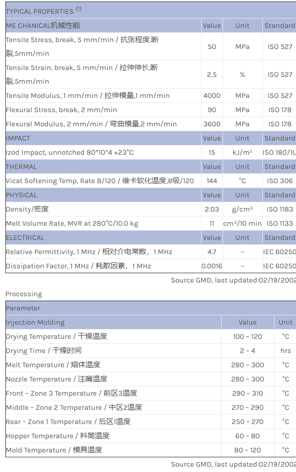 应用范围:产品描述NORYL PPO PO2354A物性表NORYL PO2354A is a 50% ceramic filled PPO based injection moulding resin. Material identification acc. ISO11469: >PPE+HIPS-TD50<
