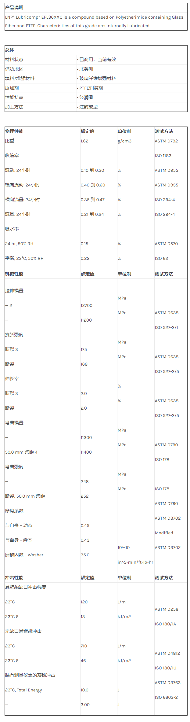 应用范围:产品描述LNP LUBRICOMP EFL36XXC物性表