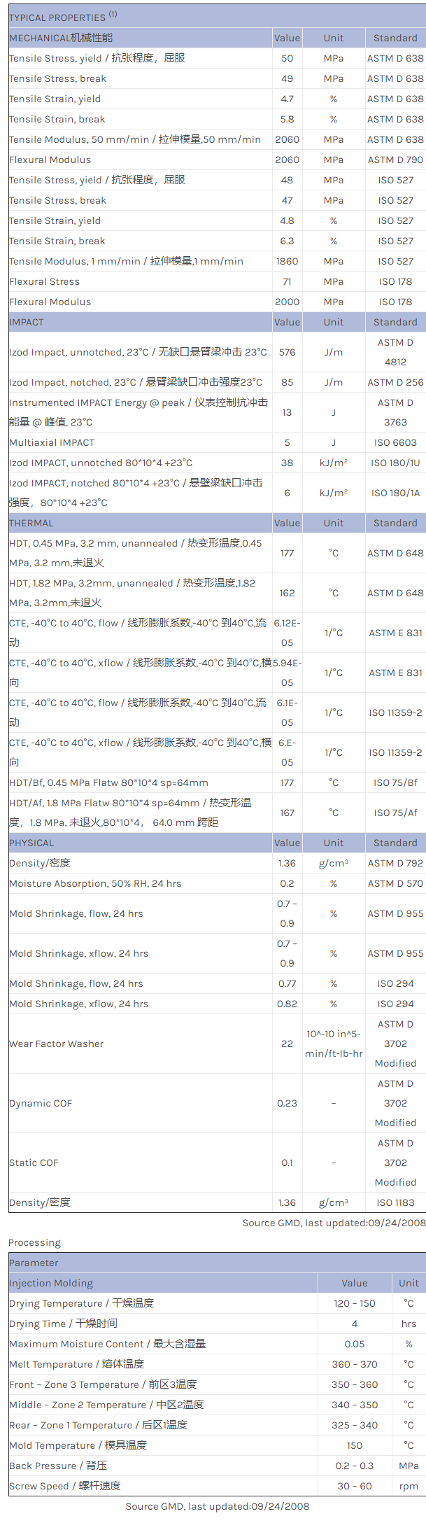 应用范围:产品描述LNP LUBRICOMP GL004物性表LNP LUBRICOMP GL004是一种聚砜(PSU)产品,可以通过注射成型进行加工。主要特性为:润滑。