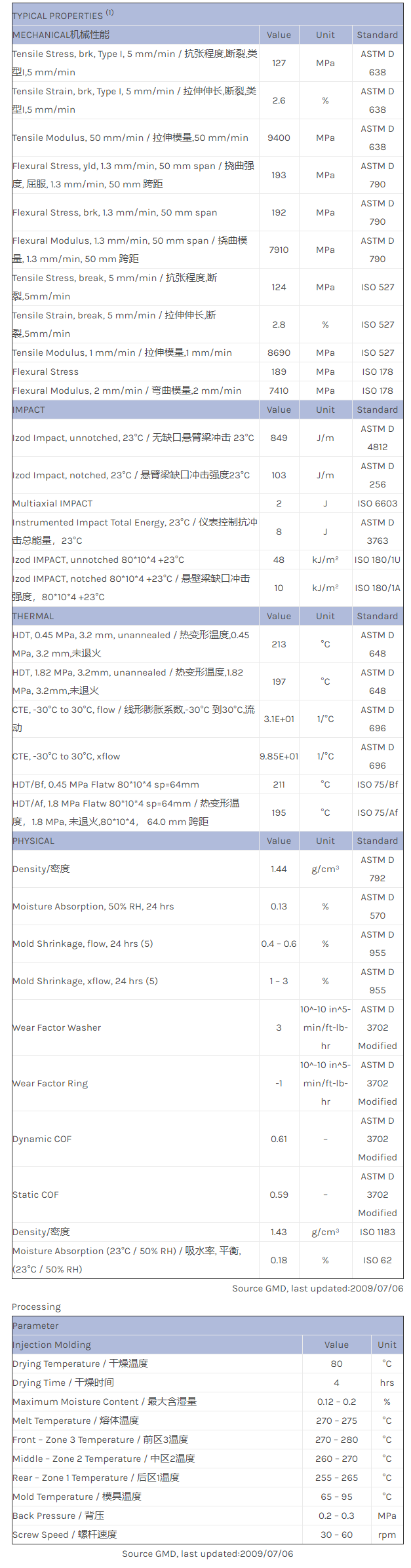 应用范围:产品描述LNP LUBRICOMP IFL36L物性表LNP LUBRICOMP IFL36L是一种聚酰胺612(尼龙6/12)产品,含有的填充物为30%玻璃纤维增强材料,可以通过注射成型进行加工。特性包括:耐磨润滑