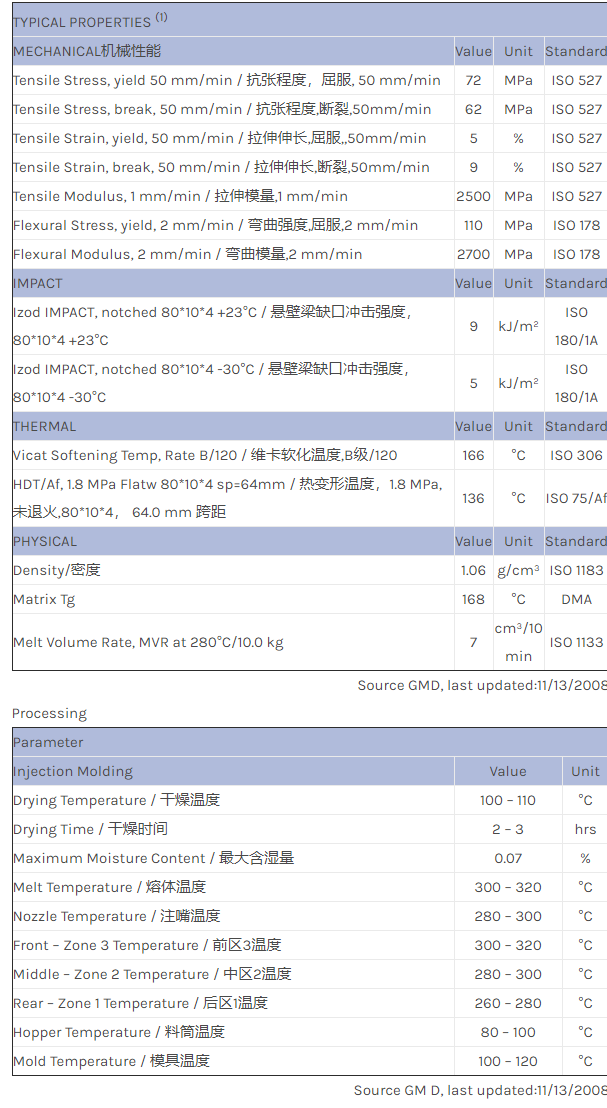 应用范围:产品描述NORYL PPO 6370HS物性表Noryl* 6370HS is a heat stabilized polyphenylene ether resin concentrate with polystyrene having a thermal HDT resistance of 136 deg C. Intended for use as an additive or a buil