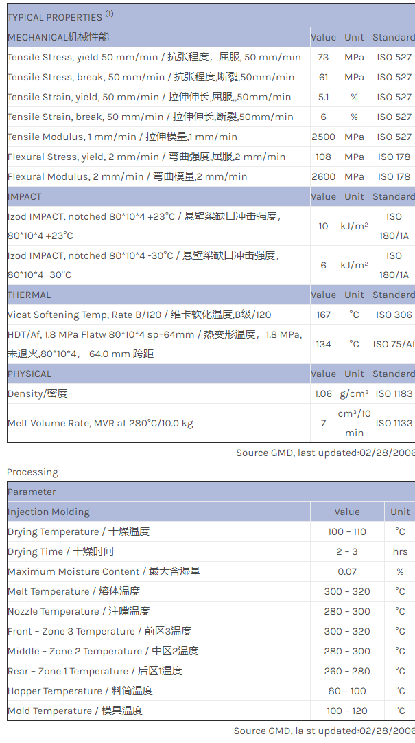 应用范围:产品描述NORYL PPO 8370HS物性表8370HS is a compounded PPO* concentrate with polystyrene