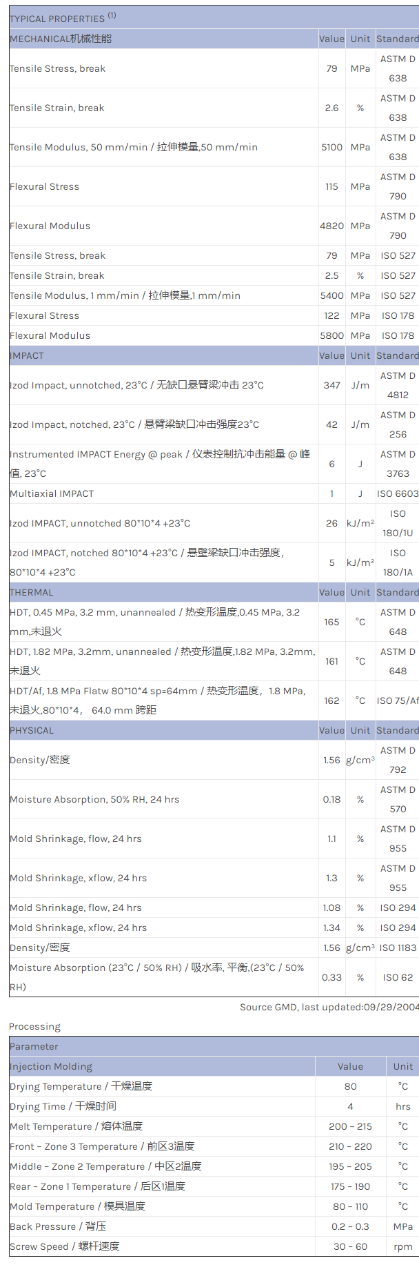 应用范围:产品描述LNP LUBRICOMP KFL32R物性表LNP LUBRICOMP KFL32R是一种聚甲醛(POM)共聚物产品,含有的填充物为10%玻璃纤维增强材料,可以通过注射成型进行加工。特性包括:耐磨润滑优良的脱模剂