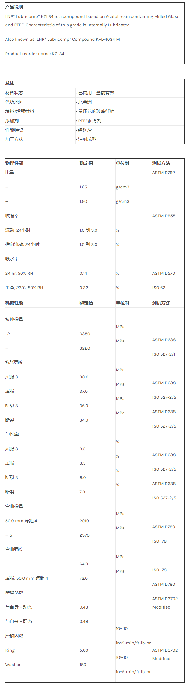 应用范围:产品描述LNP LUBRICOMP KZL34物性表