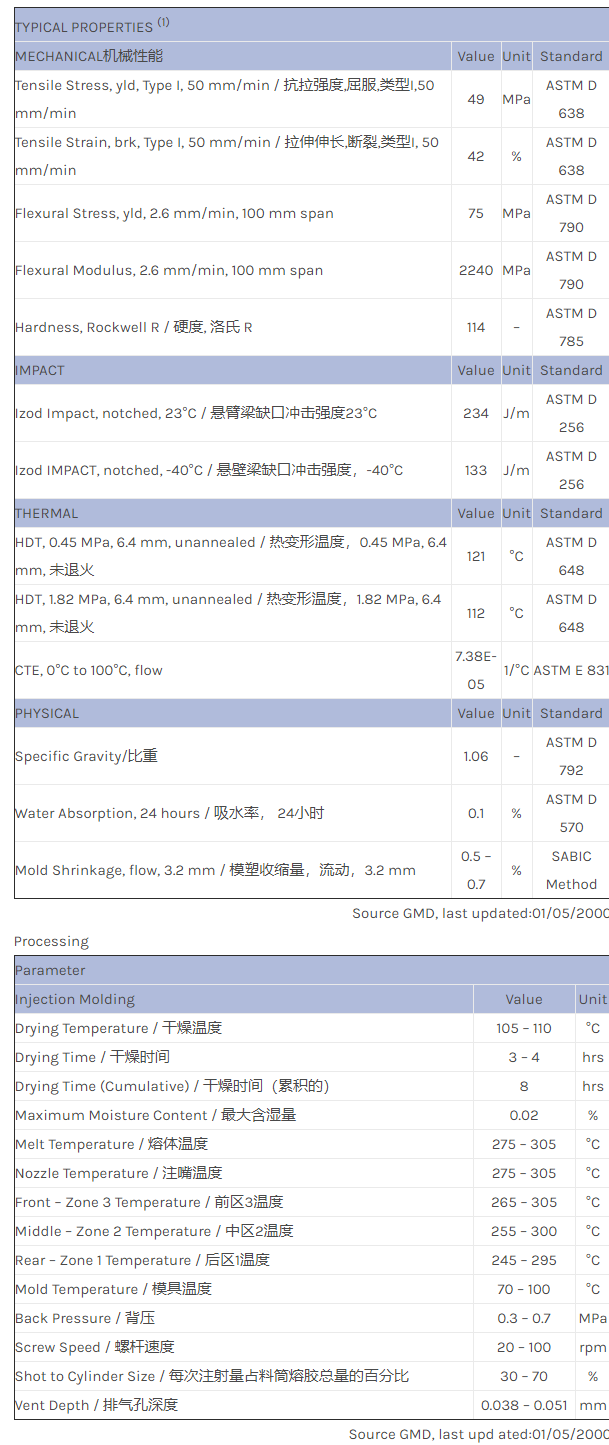 应用范围:产品描述NORYL PPO PX1025物性表Automotive interiors. High heat/moisture resistant. consistant processability