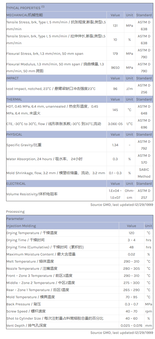 Made and tested at GEP Japan. PC+PTFE, 15% carbon fiber filled. Excellent MECHANICAL机械性能 strength/dimensional stability and abrasion resistance.