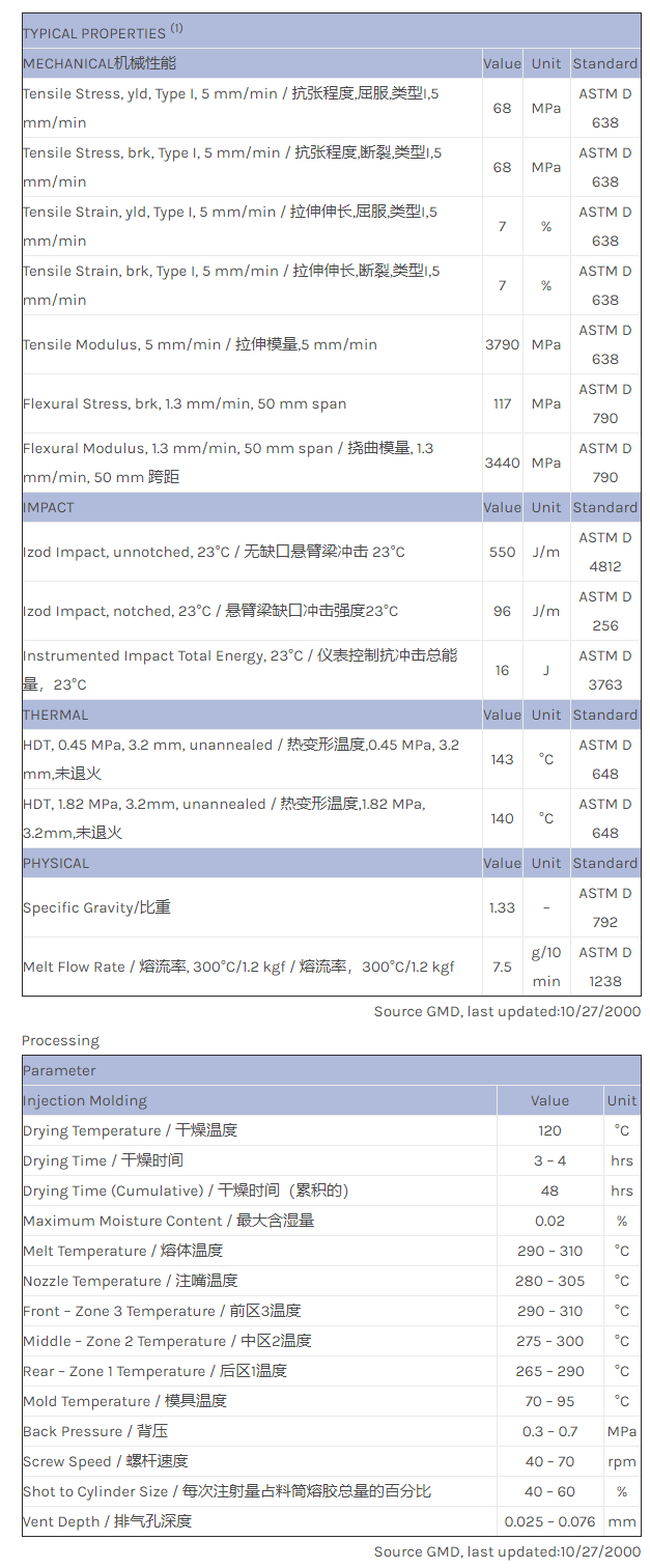 应用范围:产品描述LNP LUBRICOMP Lexan_LF1010N物性表SINGLE LOT DATA, 10% glass reinforced, 10% PTFE filled non-FR polycarbonate.