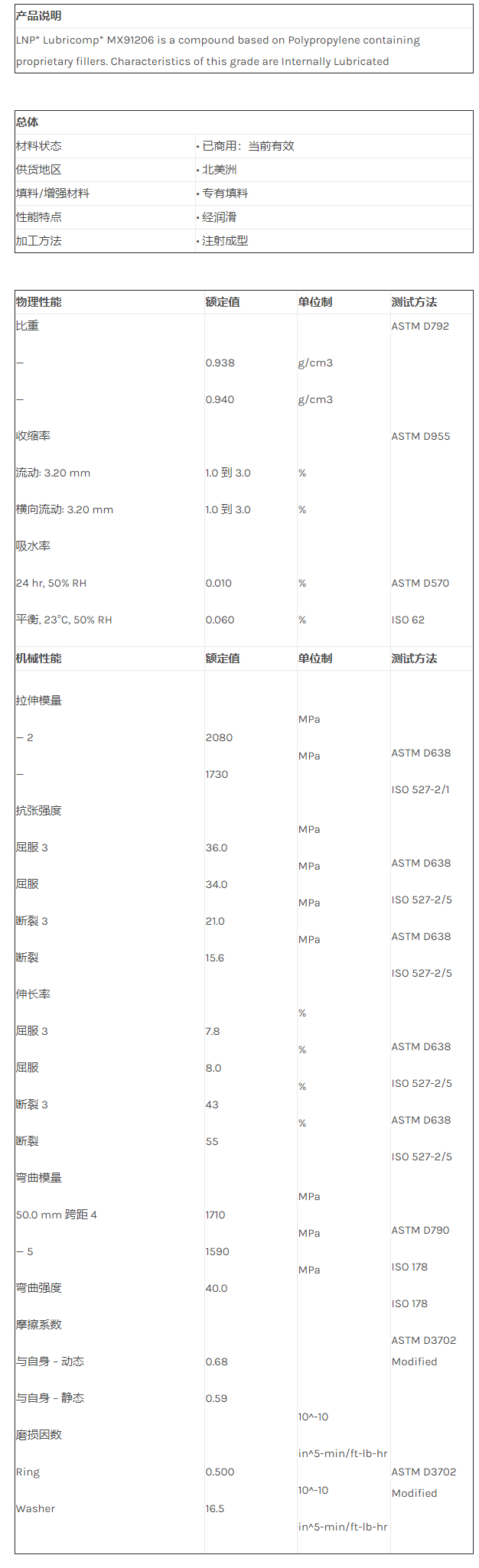 应用范围:产品描述LNP LUBRICOMP MX91206物性表