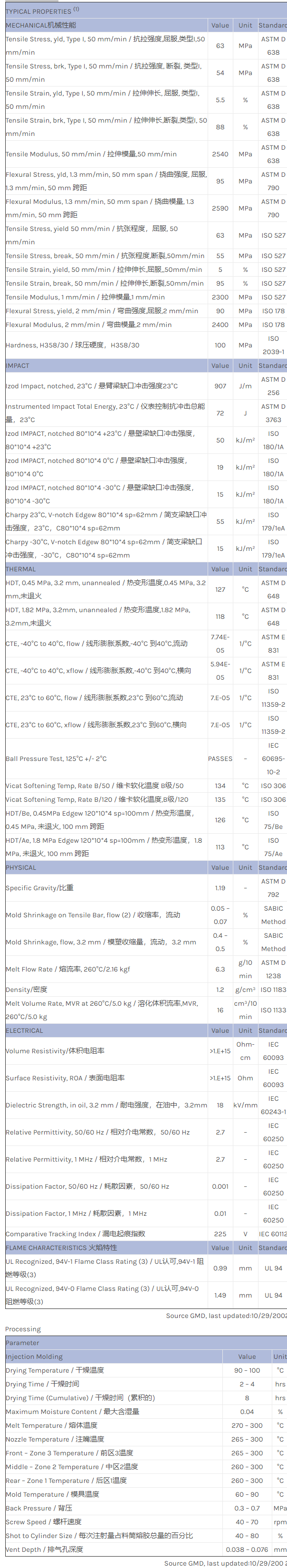 应用范围:产品描述CYCOLOY PC/ABS CH6410物性表CH6410是高热量,冲击改良PC树脂.无溴无氯阻燃,有颜色限制.相关色号:CH6410-701、CH6410-76701、CH6410-GY7E543、CH6410-GY7C123、CH6410- GY8G129、CH6410-96127、CH6410-BK1C340、CH6410-GN6E067、CH6410-7R1D026、 CH641